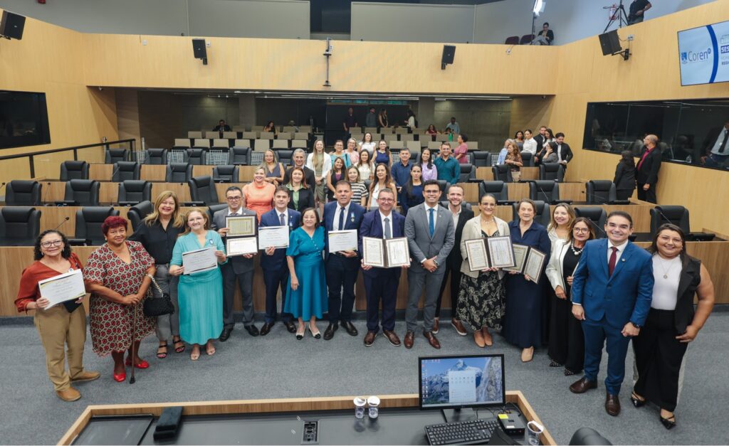 A proposição foi do presidente da ALEPI, deputado Severo Eulálio, que também presidiu a sessão. Na ocasião, foram entregues Títulos de Cidadania Piauiense aos enfermeiros Lidya Tolstenko Nogueira, Sandra Marina Gonçalves Bezerra, Flaviano Marques Aragão e Wendel Marcos Alves, em proposições de autoria do deputado estadual licenciado e atual secretário de Justiça, Coronel Carlos Augusto, conhecido pelo seu compromisso com a categoria e pela defesa constante das demandas da Enfermagem. Entre os homenageados, Sandra Marina e Wendel são conselheiros do Coren-PI, e Flaviano é ex-conselheiro da autarquia.