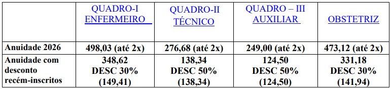 *Valores válidos para a primeira inscrição profissional.