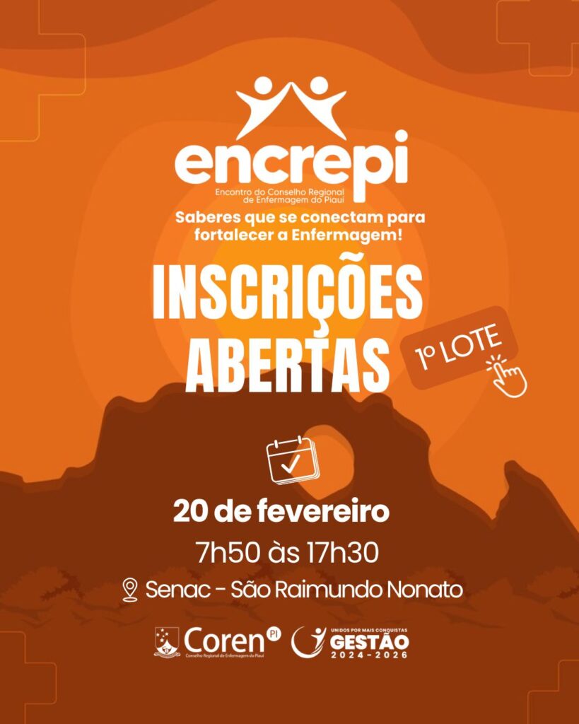 Inscreva-se: https://www.even3.com.br/encontro-do-conselho-regional-de-enfermagem-do-piaui-sao-raimundo-nonato-687846/