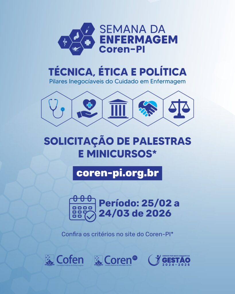 6. As palestras poderão ser presenciais ou remotas conforme disponibilidade do Coren-PI;