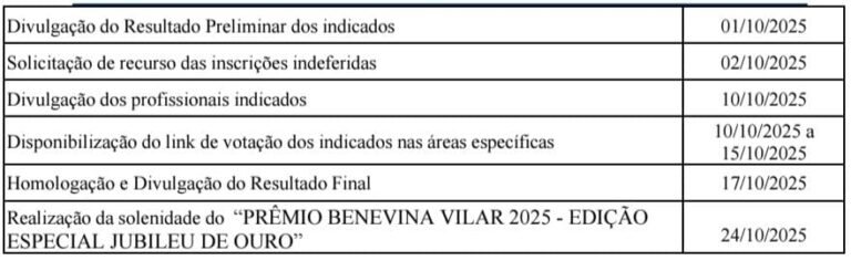 5 – Resultado Final da Votação para o Prêmio Benevina Vilar. Postado 17/10/2025